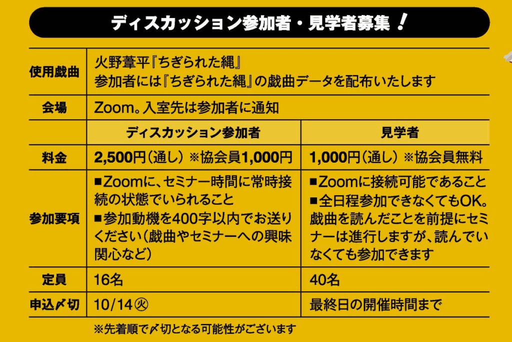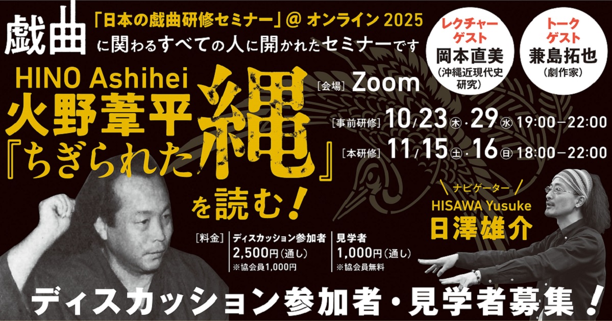 日本の戯曲研修セミナーin東京2025 火野葦平『ちぎられた縄』を読む!ディスカッション参加者・見学者募集のお知らせ