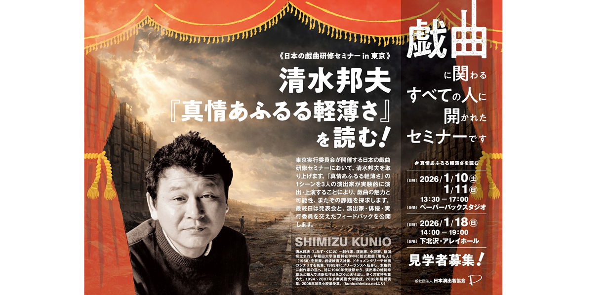 東京実行委員会が開催する日本の戯曲研修セミナーにおいて、清水邦夫を取り上げます。